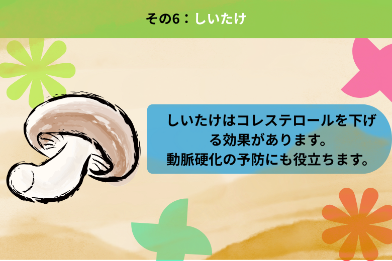 キノコ類の中でも特に優れた血管ケア食材で、動脈硬化の予防にも役立ちます。