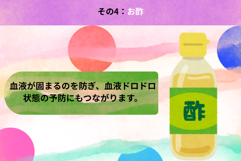 さらにクエン酸は血液が固まるのを防ぎ、血液ドロドロ状態の予防にもつながります。