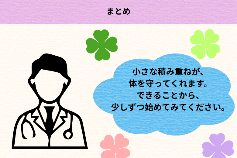 今日の小さな積み重ねが、10年後、20年後のあなたの体を守ってくれます。