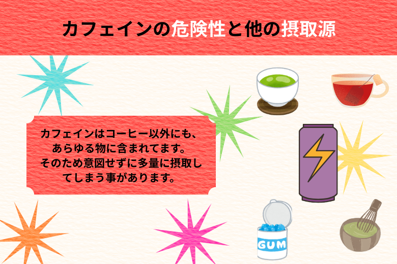 カフェインはコーヒー以外にも、紅茶、緑茶、抹茶、エナジードリンク、