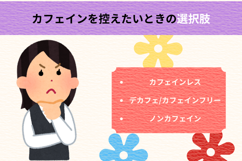 カフェインレス、デカフェ、カフェインフリー、ノンカフェインといった製品があります。
