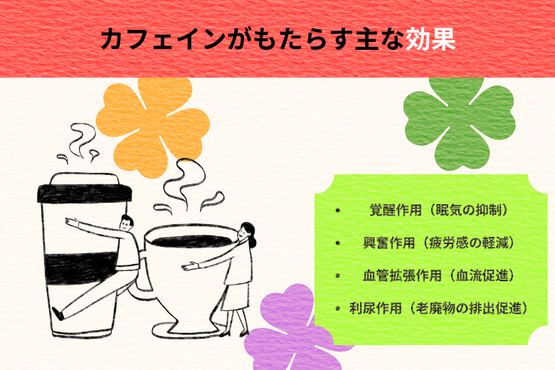カフェインの代表的な効能は大きく4つに分けられます。