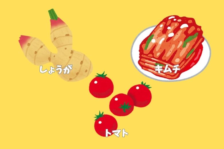 ・キムチ、トマト、しょうがを組み合わせて相乗効果を狙う
